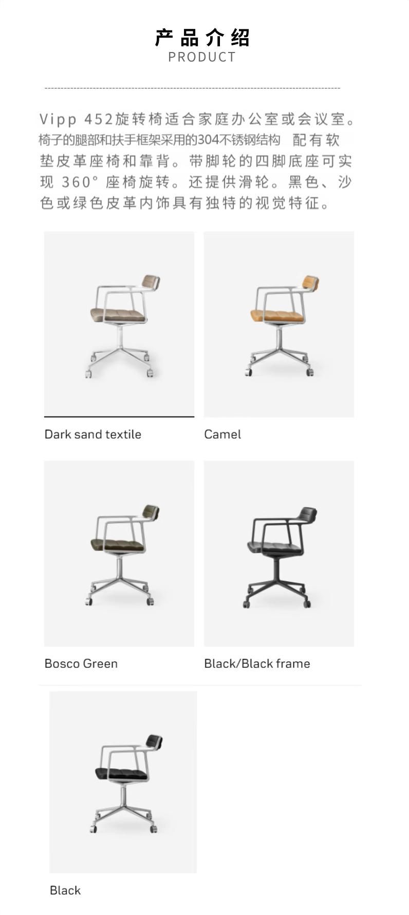 Danish Vipp 452 Swivel Chair Scandinavian Post-Modern Minimalist Luxury Genuine Leather Office Desk Chair Rotating